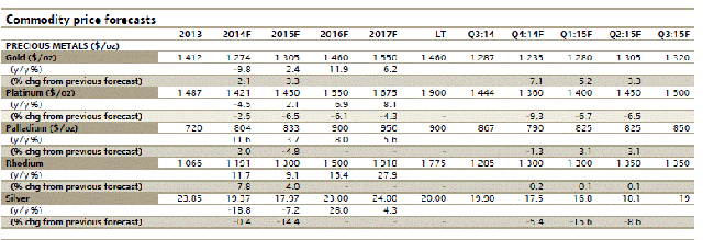 スタンダードバンク相場予想 「シルバー」2014-10-01(第4四半期)